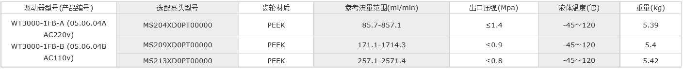 微型齒輪泵WT3000-1FA轉速范圍 | 300rpm-3000rpm |