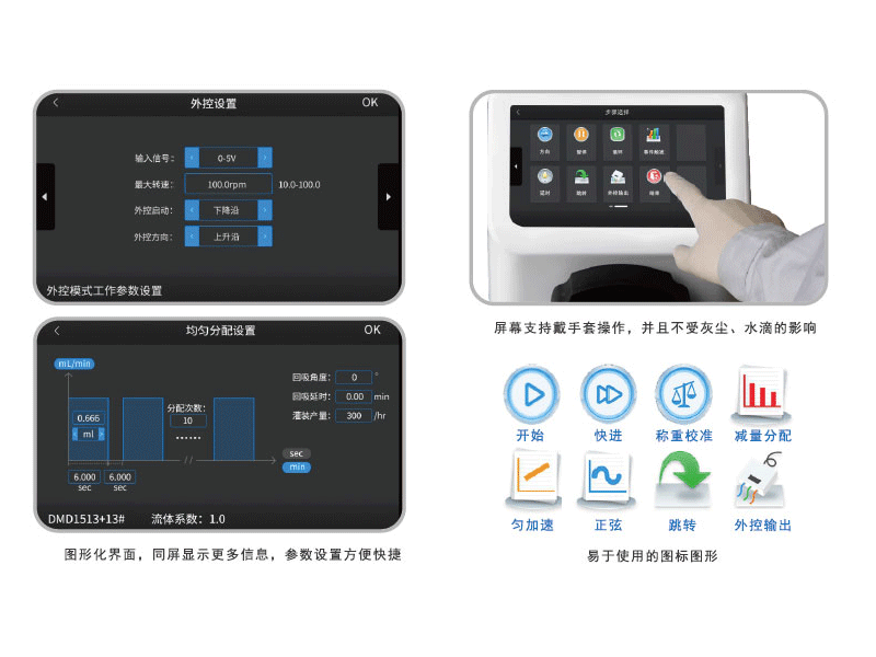 全速功能: | 一鍵控制全速工作,用于快速填充和排空,實現液體的預處理及后處理 |