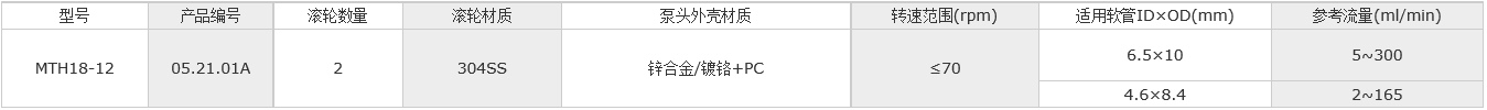 流量范圍:5~300ml/min(6.5mmID×10mmOD)