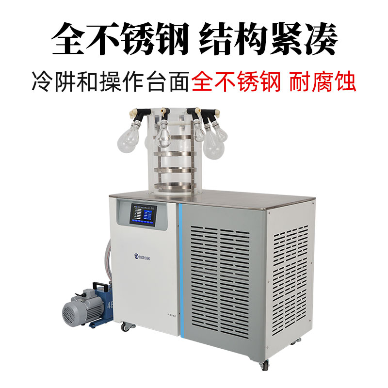 冷凍干燥機是將含水物品預先凍結(jié),然后使其水分在真空狀態(tài)下升華而獲得干燥物品的一種技術(shù)方法。經(jīng)冷凍干燥后物品理化性質(zhì)、生物特性基本不變,易于長期保存,復水后物品能迅速恢復到凍干前的形態(tài),并且能保持其原有的生化特性。因此,冷凍干燥機在化工、食品、醫(yī)藥、生物等制品的制備和檢測領(lǐng)域得到廣泛應用。