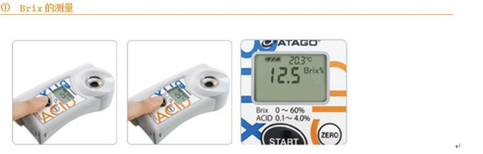 為了方便更多的農(nóng)業(yè)、水果行業(yè)的客戶快速檢測糖酸比,提供更高的測量服務(wù)和更低的價(jià)格。讓跟多的農(nóng)業(yè)和水果行業(yè)客戶認(rèn)識到不僅僅需要檢測糖度,還需要檢測酸度,最合適的糖酸比才是評價(jià)水果的最好指標(biāo)。ATAGO(愛拓)研發(fā)了這款新的糖酸一體機(jī),不僅可以同時檢測水果的糖酸比,而且不需要繁雜的操作方法和酸度測定試劑。PAL-BX/ACID1 柑橘糖度一體機(jī),又稱為柑橘糖酸比檢測儀、檸檬酸糖酸度一體機(jī)可以用來測量柑橘、橙子、蘋果等水果的糖度和果酸含量,并將其酸度以檸檬酸的多少來表示。