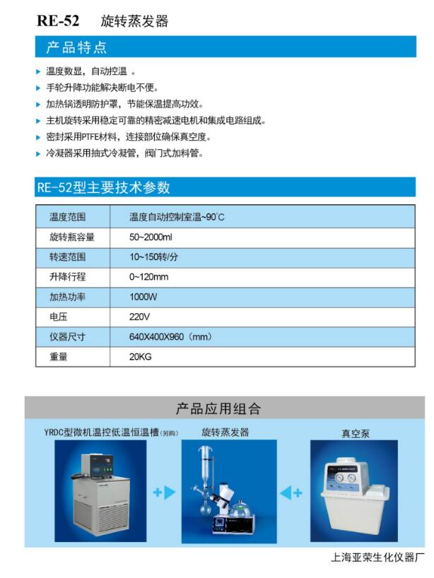 用途簡介:旋轉式蒸發器是采用旋轉蒸發瓶(燒瓶),增大蒸發面積在減壓下置于水浴中一邊旋轉,一邊加熱的裝置,使瓶內溶液擴散蒸發。是化學工業,醫藥工業,高等院校和科研實驗室等單位用于制造及分析實驗賴以濃縮,干燥,回收等較為理想的必備基本儀器。
