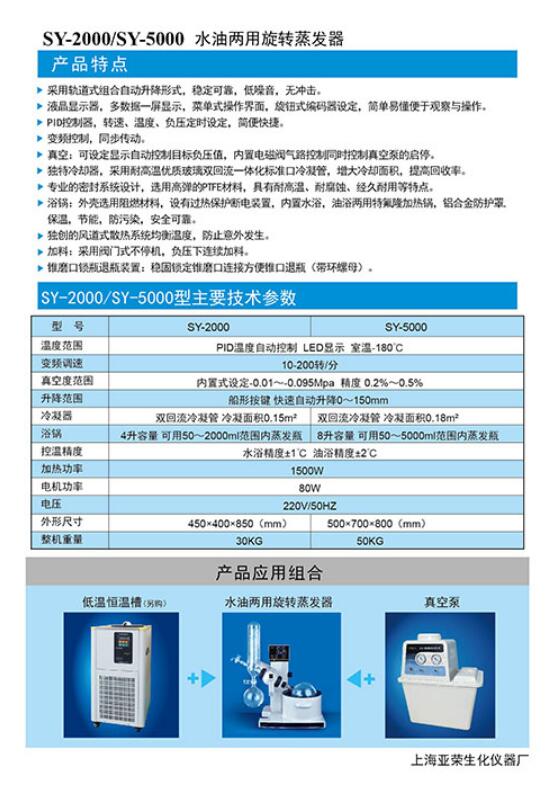 SY-2000型是我廠研發(fā)的綜合型油浴、水浴兩用旋轉(zhuǎn)蒸發(fā)器。整機(jī)設(shè)計(jì)美觀大方,合理緊湊,操作簡(jiǎn)捷方便,控溫精準(zhǔn),性能可靠。除了實(shí)用和人性化的設(shè)計(jì)以外,堅(jiān)固、耐用的性能也是上海亞榮生化儀器廠的產(chǎn)品最重要的特點(diǎn)。作為國(guó)內(nèi)旋轉(zhuǎn)蒸發(fā)儀的領(lǐng)先者,完善的產(chǎn)品質(zhì)量和銳意進(jìn)取、不斷創(chuàng)新的精神市上海亞榮生化儀器廠企業(yè)品牌最重要的構(gòu)成元素。