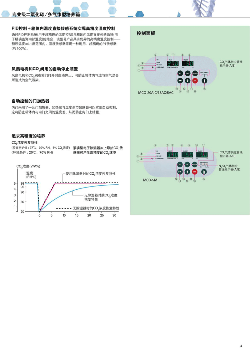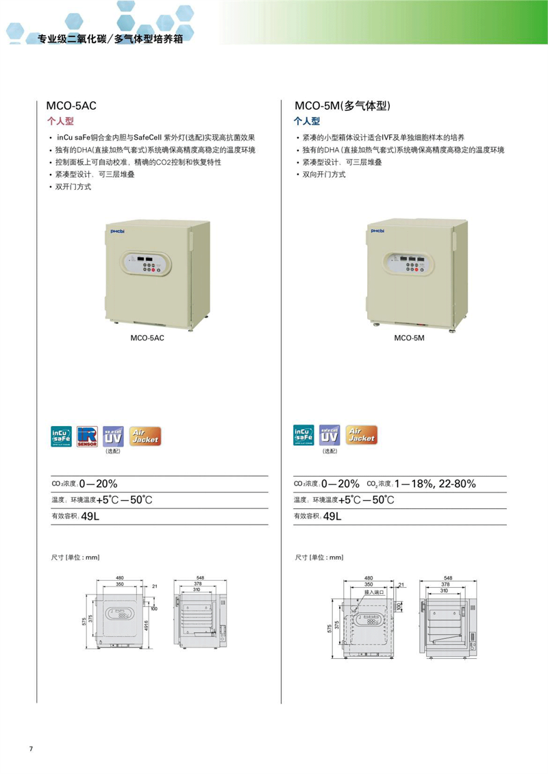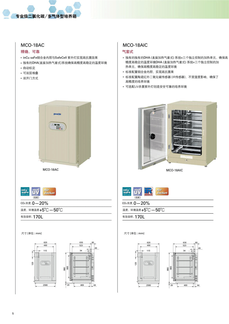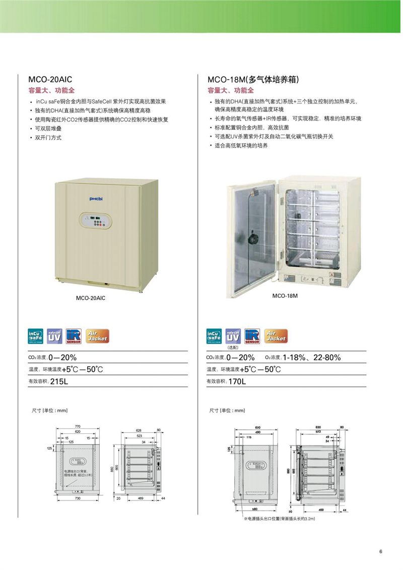 PHcbi專業級二氧化碳/多氣體型培養箱MCO-18AC 精確、可靠 氣套式; ·inCu saFe銅合金內膽與SafeCell紫外燈實現高抗菌效果。 DHA(直接加熱氣套式)系統確保高精度高穩定的溫度環境; ·自動標定; ·可雙層堆疊; ·雙開門方式;