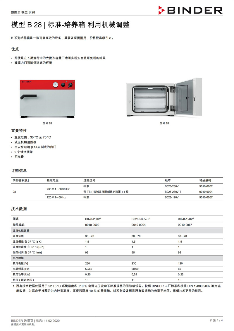 德國binder模型 B 28 | 標準-B028-120V培養(yǎng)箱。德國binder B 系列培養(yǎng)箱是一款可靠高效的設(shè)備,其裝備堅固耐用,價格極具吸引力。