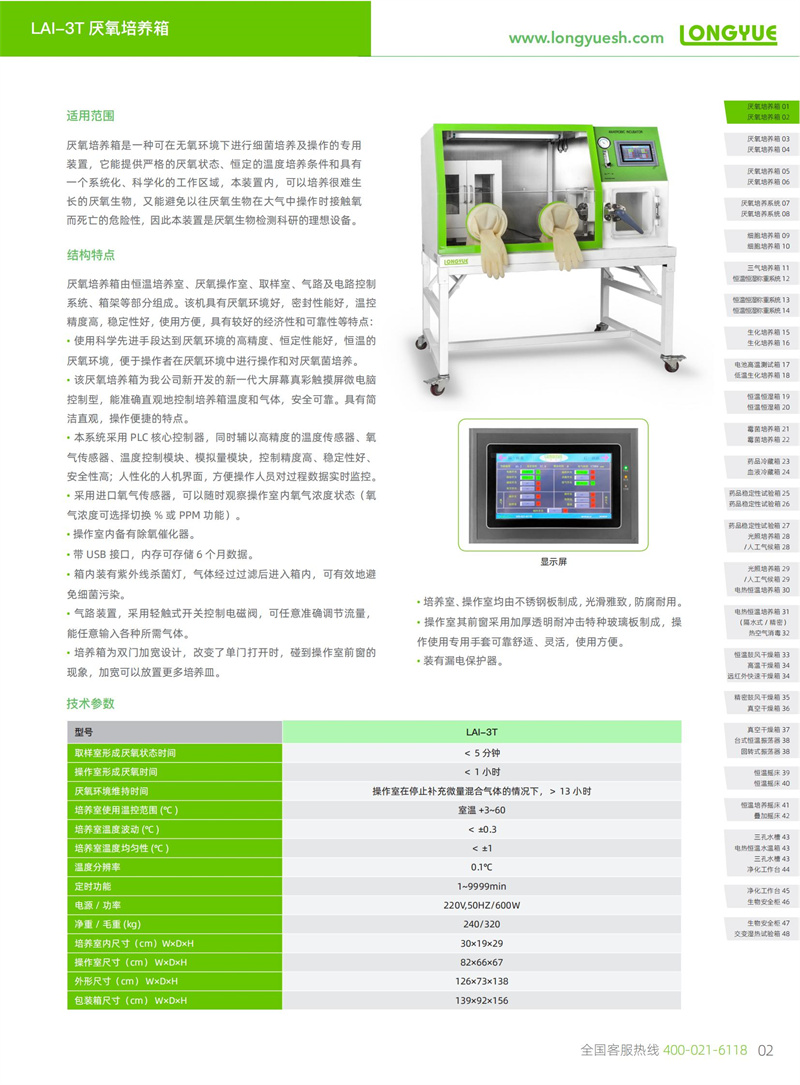 LAI-3T厭氧培養箱由恒溫培養室、厭氧操作室、取樣室、氣路及電路控制系統、箱架等部分組成。該機具有厭氧環境好,密封性能好,溫控精度高,穩定性好,使用方便,具有較好的經濟性和可靠性等特點。