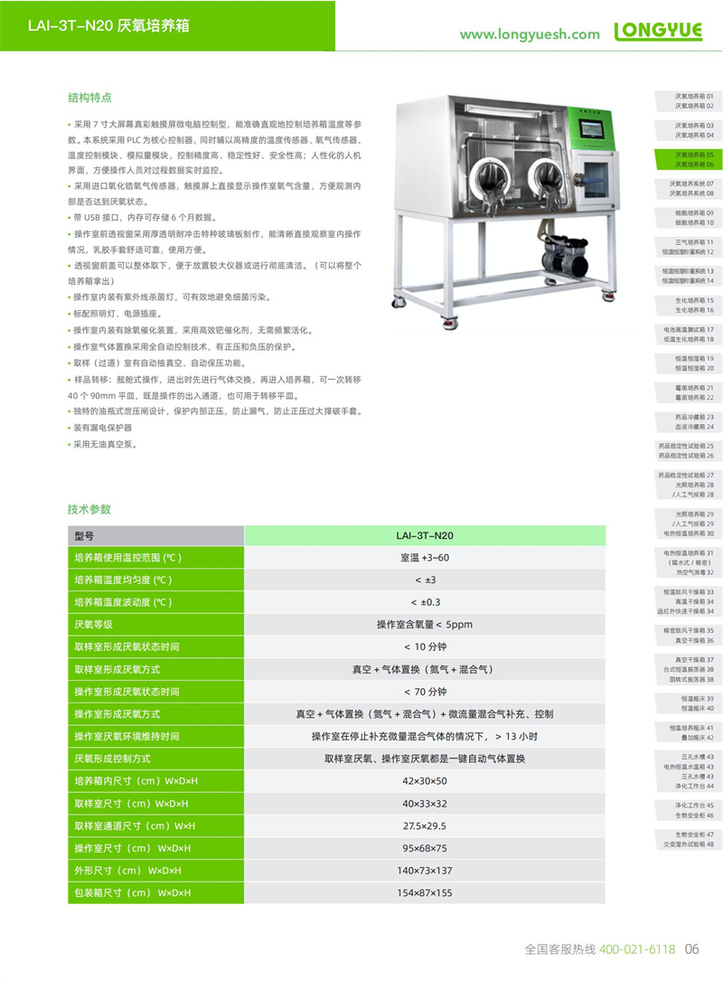 上海龍躍LAI-3T-N20厭氧培養箱培養箱采用 7 寸大屏幕真彩觸摸屏微電腦控制型,能準確直觀地控制培養箱溫度等參數。本系統采用 PLC 為核心控制器,同時輔以高精度的溫度傳感器、氧氣傳感器、溫度控制模塊、模擬量模塊,控制精度高、穩定性好、安全性高;人性化的人機界面,方便操作人員對過程數據實時監控。